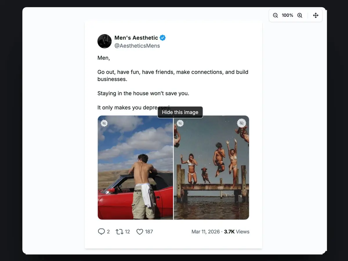 Screenshot tweets with hidden single images. Works with tweets where the image is collapsed by default.